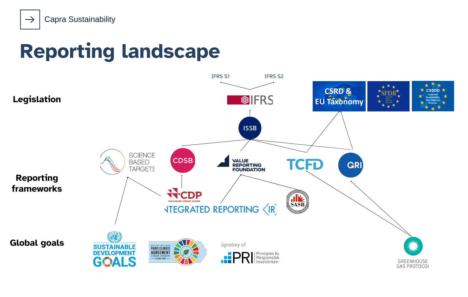 Capra helps organisations make sense of this complexity, turning evolving requirements into clear, actionable ESG reporting and strategy.